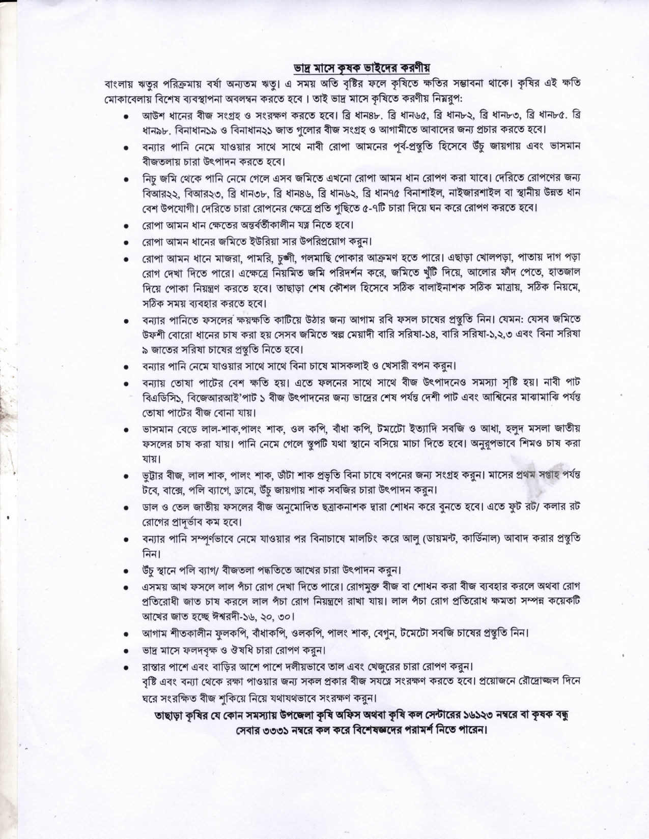 ভাদ্র মাসে কৃষক ভাইদের করণীয়